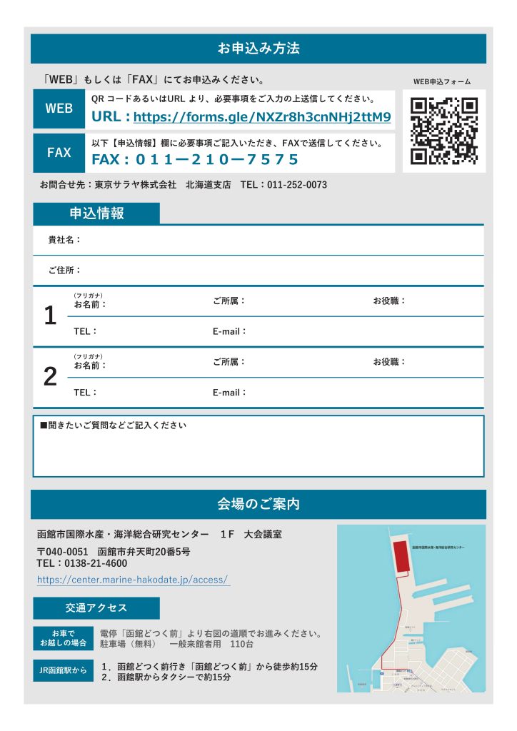 このセミナーでは、函館マリカルチャープロジェクト関係者であるコンブ研究部会の北大・秋田助教およびマーケティング部会の函館市農林水産部・佐々木課長などが登壇する予定です。