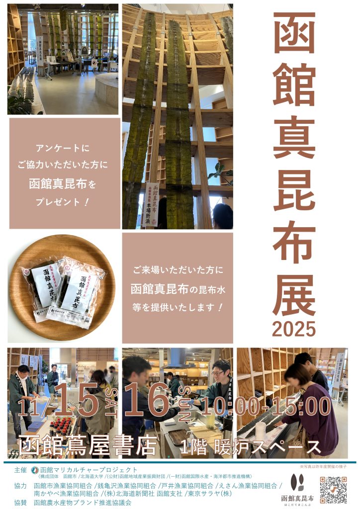 函館マリカルチャープロジェクトでは、「昆布の日」にちなんで、11月15日(土)・16日(日)の2日間、「函館真昆布展2025」を函館蔦屋書店にて開催します。
